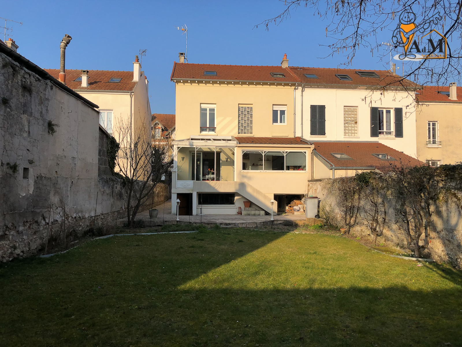 Le tout édifié sur une parcelle de 403 m2 clos par murs, jardin exposé SUD, sous sol total compartimenté en une buanderie, cave à vin et atelier.