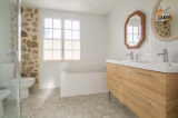 A l'étage un palier desservant trois grandes chambres dont une avec rangement, une salle d'eau avec douche, baignoire, WC et double vasque.
