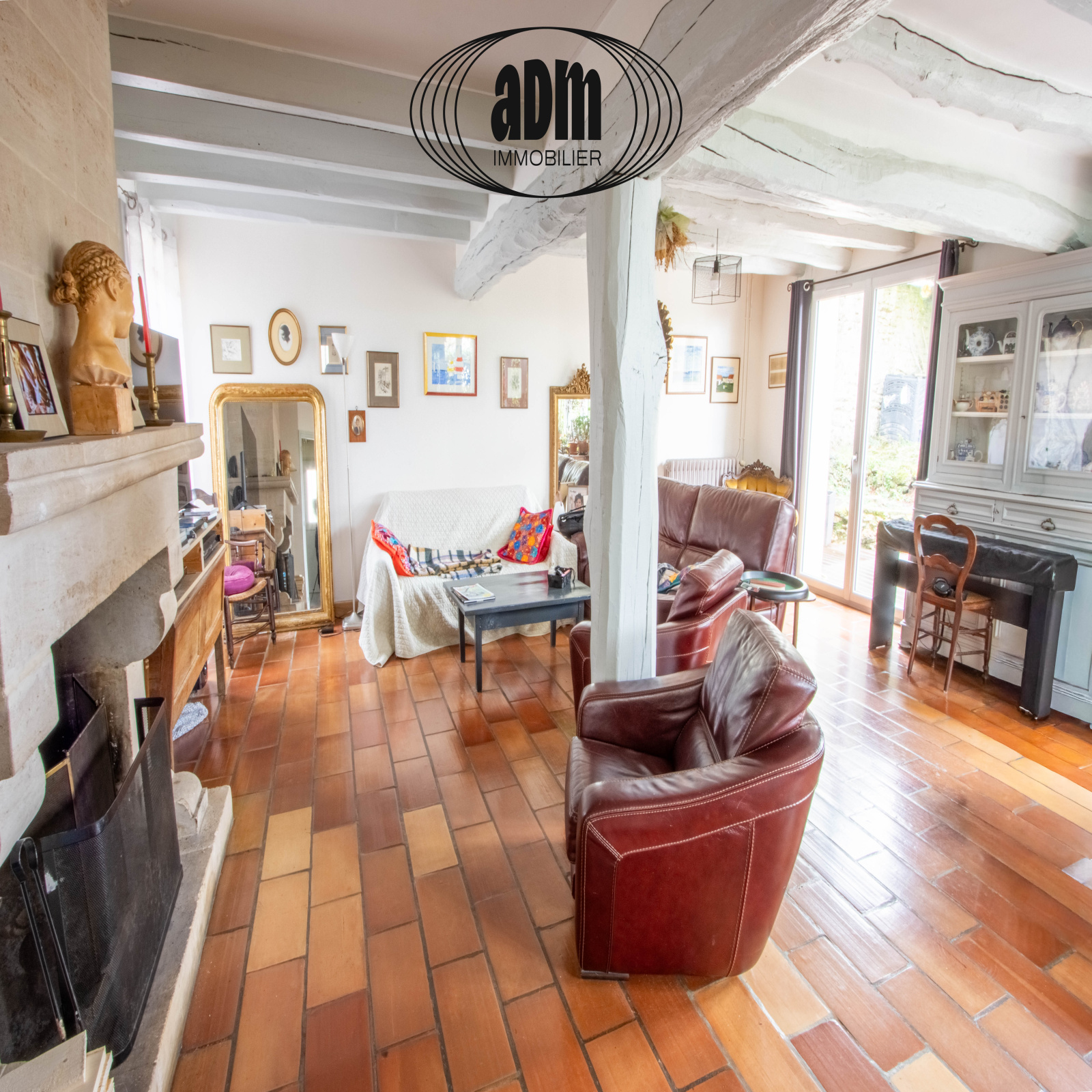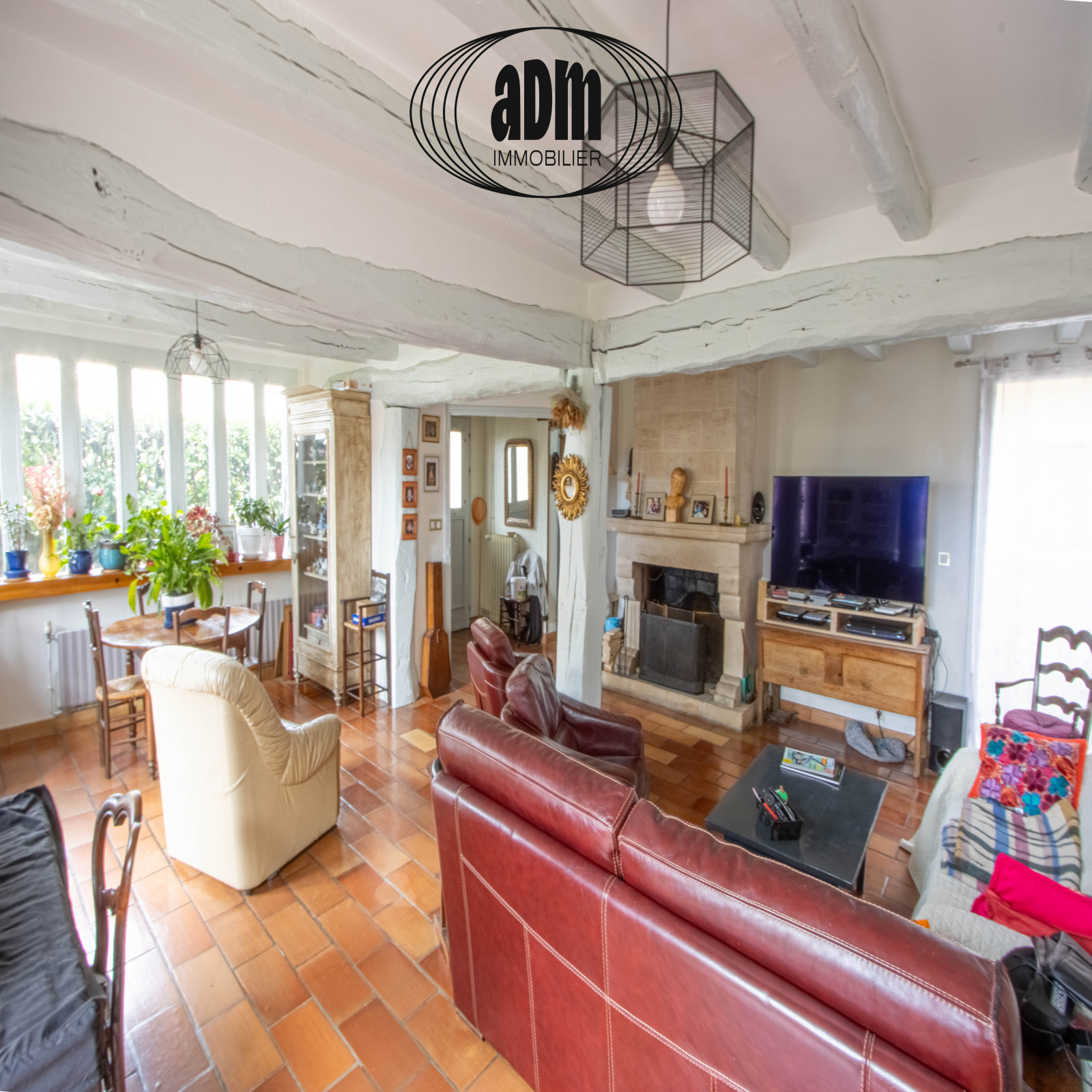 • Un vaste salon / séjour lumineux avec cheminée à foyer ouvert