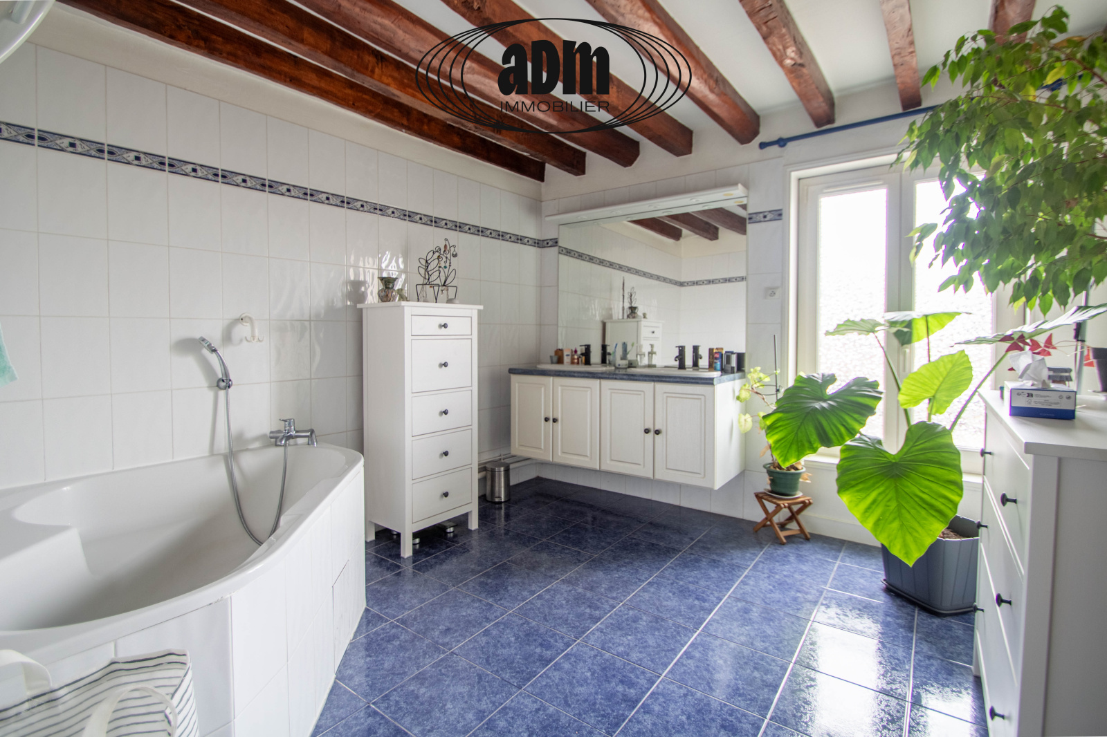 -À l’étage : 4 chambres, Salle de bains, WC indépendant.